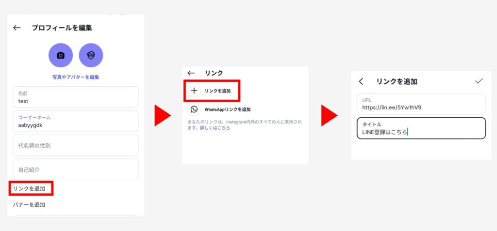 濃い見込み客を獲得しやすい点は、マーケティングにおいて最大のメリットです。インスタからLINEに飛ぶには、以下の手順を踏む必要があります。