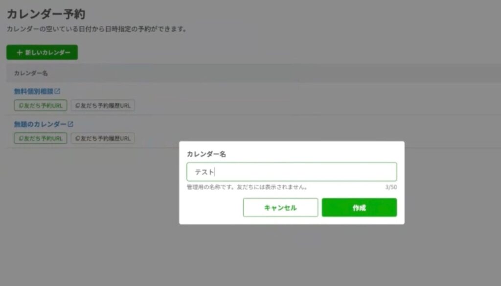 Lステップ管理画面の「予約管理」から「カレンダー予約」を選択し、新しい予約ページを作成しましょう。