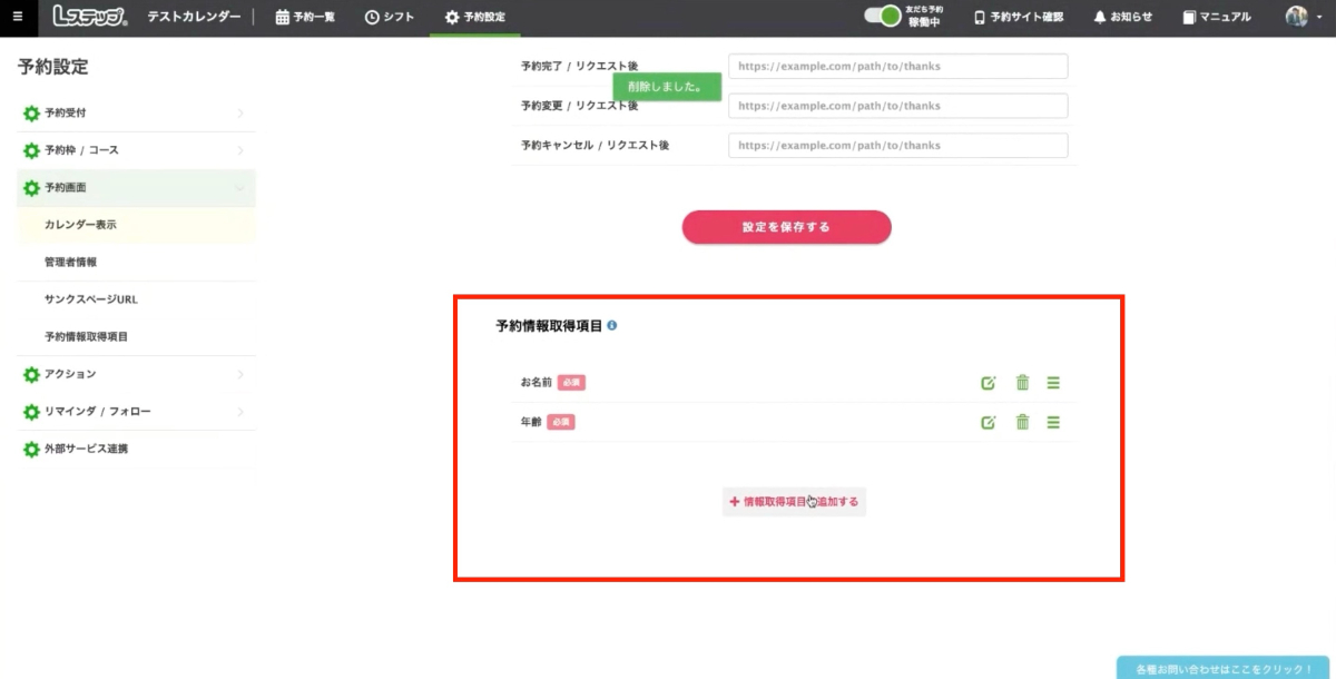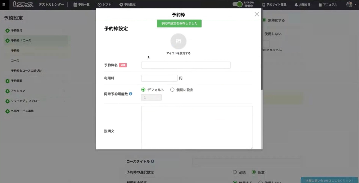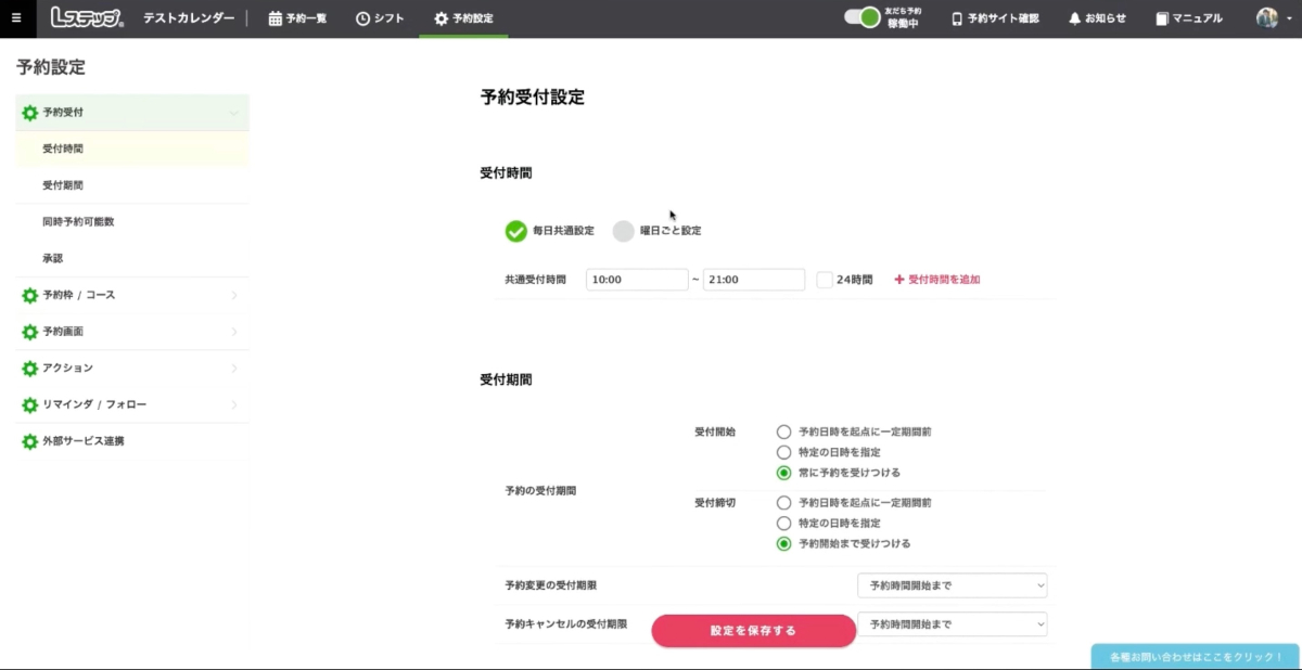 まずは、予約システム全体のルールを決める基本設定から始めます。