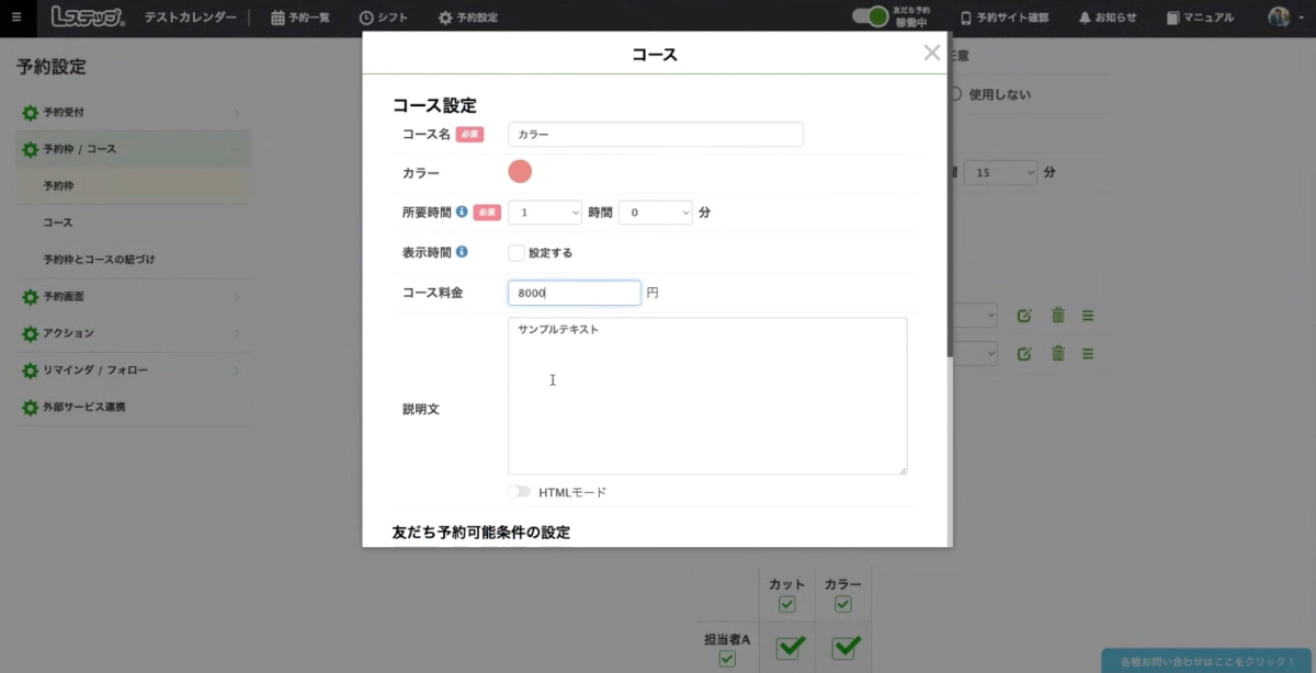 前述の通り、Lステップでは担当者(予約枠)ごとに異なる受付時間や、異なるGoogleカレンダーを設定できます。