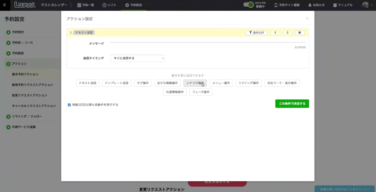 自動化アクションの設定がLステップのカレンダー予約を成功させる上で重要なステップです。