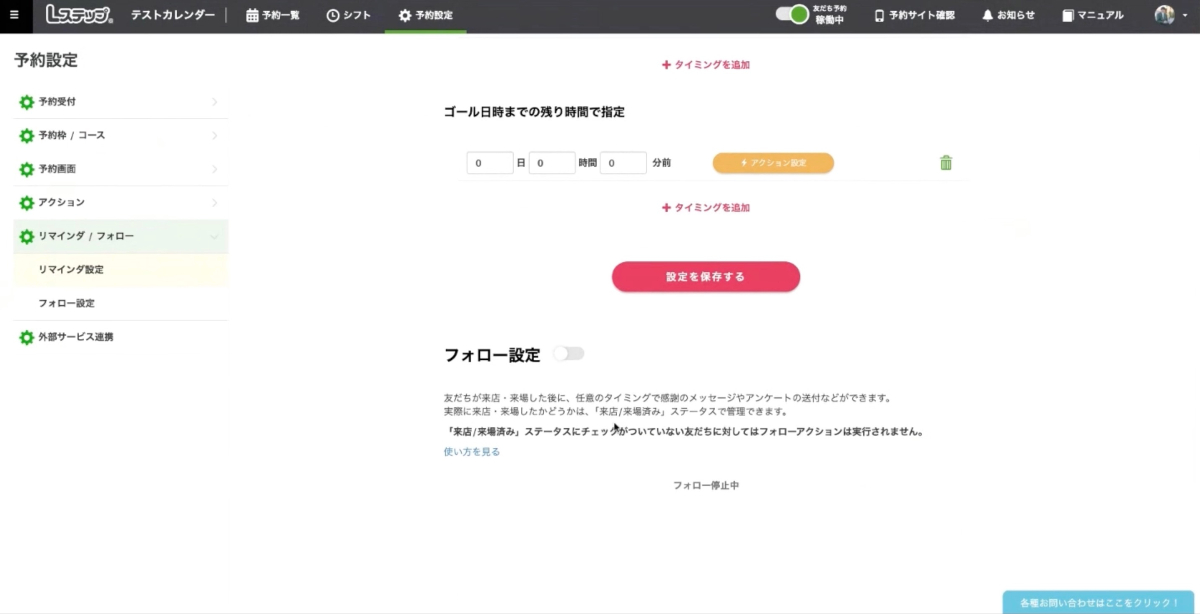 「フォロー設定」により、来店後のフォローも自動化しましょう。