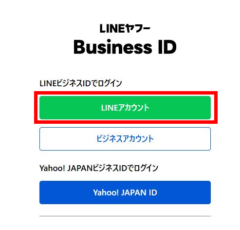 LINE公式アカウントは「LINE Business ID」から作成できます。初期設定を円滑に進めるために、今回は「LINEアカウントで登録」から作成してください。
