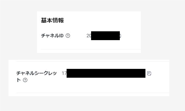 次に、LINE公式アカウントの管理画面から、「Channel ID」と「Channel Secret」という2つのコードを取得します。