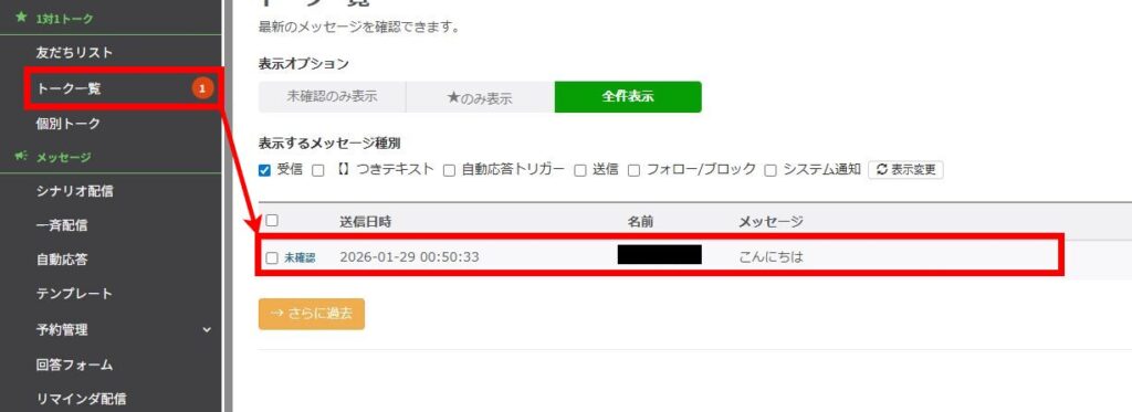 - 個別トークの確認・送信